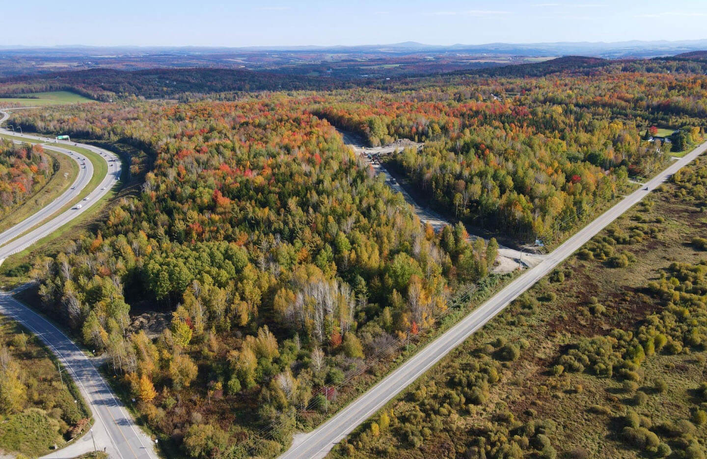 De grands terrains d’au moins 2 acres et plus, boisés et aux reliefs variés.